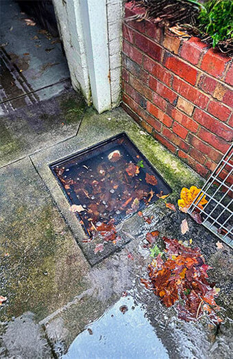 Urgent clearing of blocked ORGs (overflow relief gullies) connected to stormwater lines that aren’t draining during rain, preventing property flooding.